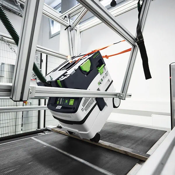 Am Ende der hochmodernen Montagelinie steht ein Prüfschrank, der komplett neu entwickelt wurde. Und das hat mit den Absaugmobilen zu tun, die auf der neuen Linie gefertigt werden. Denn das neue Touch-Bedienfeld, das erstmalig bei den Kompaktsaugern CT MINI und MIDI zum Einsatz kommt, erfordert ganz neue Prüfmethoden. Und: Es ist die erste Prüfanlage mit Bluetooth® Technologie, schließlich müssen auch kabellose Funktionen vor der Auslieferung der Absaugmobile endgeprüft werden. Was Festool in die Qualitätssicherung investiert, ist schon beeindruckend. Das gilt bei den Werkzeugen und Absaugmobilen gleichermaßen. Für Ralf Bärreiter gehört es zum Kerngeschäft: „Um die Qualität unserer Produkte hundertprozentig abzusichern, ist uns nichts zu viel. Dafür tun wir alles. Und sogar noch ein bisschen mehr.
