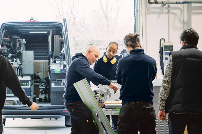 Klar: Festool Werkzeuge können eine ganze Menge. Aber um ihr Potenzial voll ausschöpfen zu können, müssen die Kunden auch wissen, wie sie die Werkzeuge und Zubehöre im Festool System optimal einsetzen. Welcher Schleifer eignet sich am besten? Wie trifft man bei Schleiftellern und -papieren die richtige Wahl? Führungsschiene und Winkelanschlag? Erleichtern einzeln und im Zusammenspiel die Arbeit ungemein. Unsere Anwendungstechniker wissen Bescheid. Und sie beraten die Kunden weit darüber hinaus, wenn es darum geht, den Betrieb effizienter zu gestalten oder die Mitarbeiter für das Thema Gesundheitsschutz zu sensibilisieren. Darin gehen sie voll auf: als Anwendungsspezialisten, Kundenbetreuer und Motivatoren.