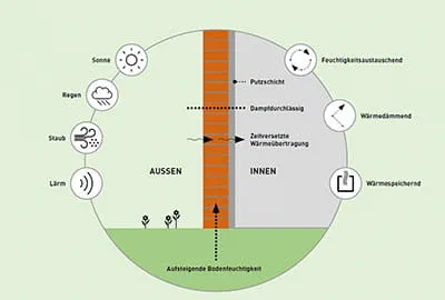 -Ressourcenschonender Baustoff, zu 100 Prozent wiederverwertbar. -Diffusionsoffen und wärmespeicherfähig.