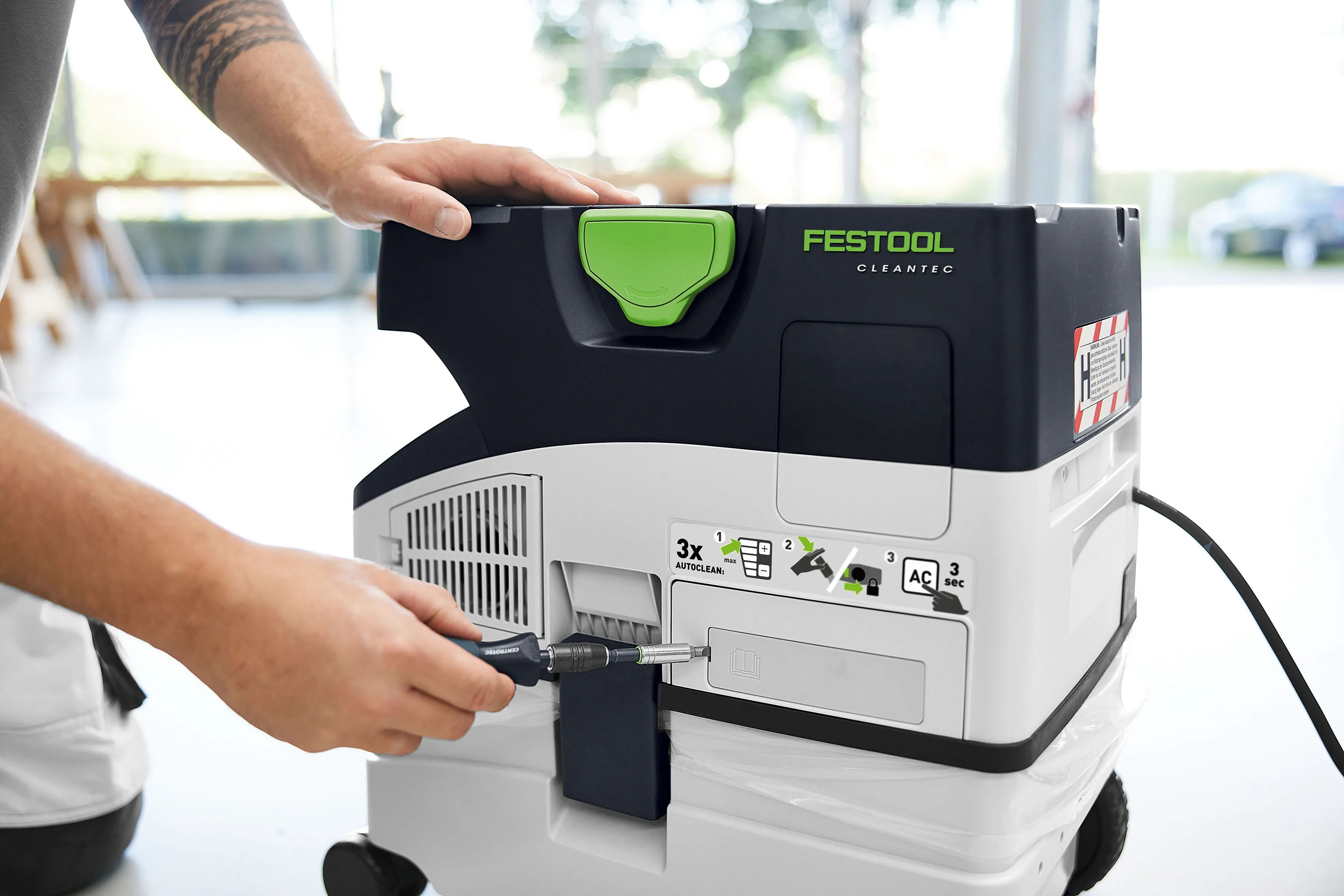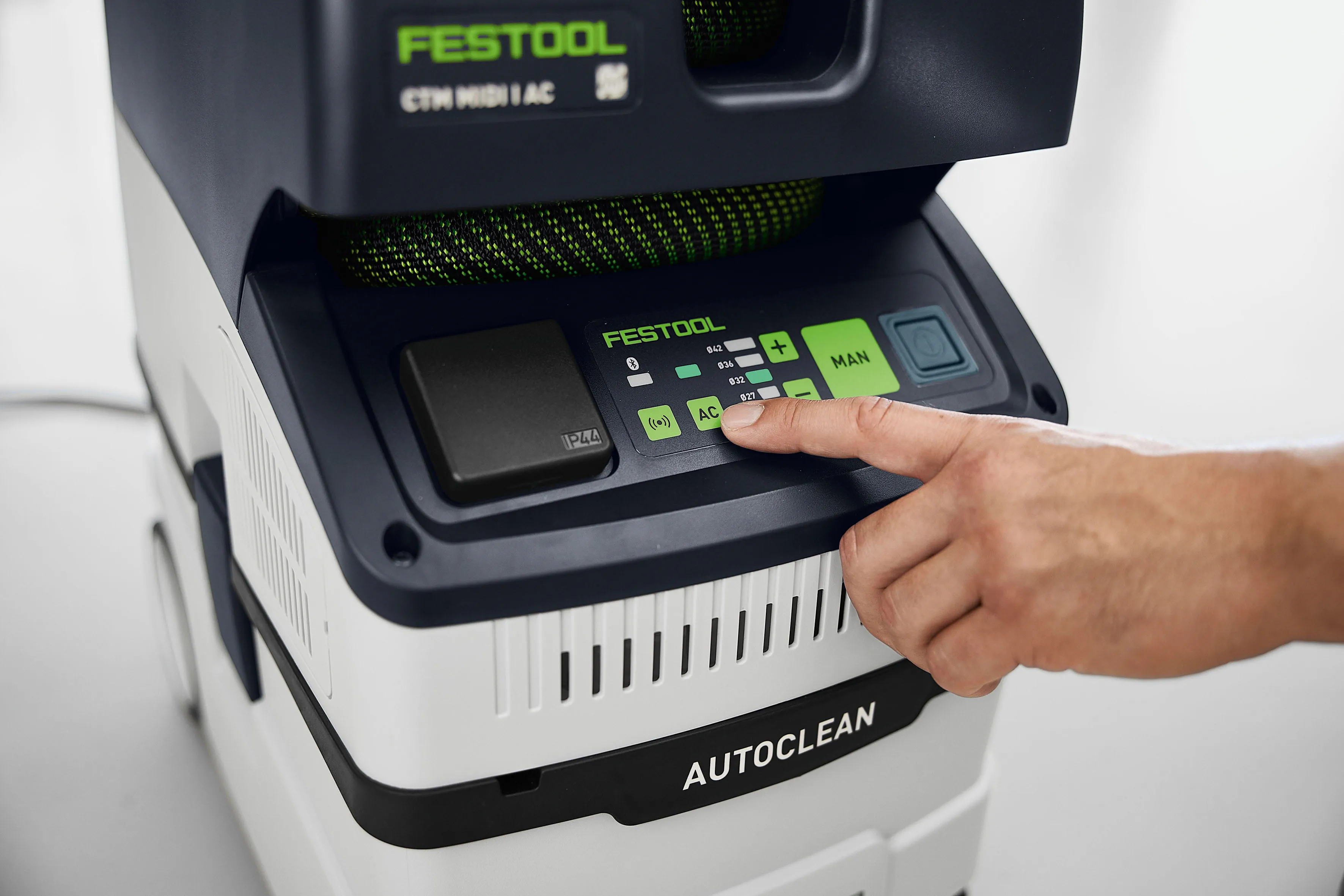 Festool hat seine AUTOCLEAN Funktion technisch weiterentwickelt und jetzt auch in seine Kompaktklasse integriert. Dank dieser automatischen Filterreinigung (AC) bleibt die Saugleistung auch bei längeren Einsätzen konstant hoch. Zudem lassen sich durch die längere Filterlebensdauer und den geringeren Wartungsaufwand Kosten und Zeit sparen. Festool empfiehlt diese neuen Sauger insbesondere für mineralische Stäube.