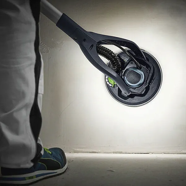 Festool hat seinen neuen PLANEX mit einer verbesserten, regulierbaren Ansaugung ausgestattet. Dadurch hält er sein Eigengewicht an Wand und Decke und entlastet Arme und Rücken – insbesondere bei langen Schleifenarbeiten. Zudem lässt sich der PLANEX je nach Arbeitshöhe individuell anpassen, denn dessen Arbeitslänge ist mit zwei Verlängerungen auf bis zu 2,1 Meter erweiterbar. Das bedeutet, dass sich mit dem neuen PLANEX auch besonders hohe Wände und Decken schleifen lassen. Zudem sorgt der clevere T-Griff für eine höhere Reichweite und erleichtert somit das Arbeiten. Insgesamt hat Festool das Handling des neuen PLANEX sehr intuitiv gestaltet: er lässt sich leicht bedienen und ist im neuen Systainer³ XXL bestens aufgeräumt – für einen sicheren und platzsparenden Transport.