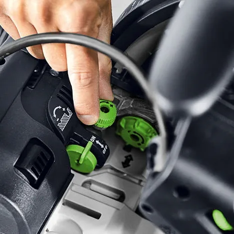 „Mit unserer neuen TSV 60 K haben wir unsere vielseitigste Tauchsäge geschaffen, denn mit 60 mm Schnitttiefe und einer mitschwenkenden Vorritzer-Einheit sind selbst Gehrungsschnitte bis 45° in Kombination mit der Führungsschiene möglich“, so Boris Seyfried. Im täglichen Einsatz bringt das gesamte Zubehörsystem rund um die TSV 60 K seine Vielfalt erst so richtig zur Geltung. Besonders praktisch ist, dass sich die neue Tauchsäge mit allen Kappschienen kombinieren lässt. So gelingen wiederholgenaue, präzise und saubere Kappschnitte auch „im Kleinformat“ spielend leicht. Festool hat bei der Entwicklung der neuen TSV 60 K an viele weitere Details gedacht wie beispielsweise an einen einfachen FastFix Sägeblattwechsel, Sichtfenster, Drehzahlregelung, exakte Tiefeneinstellung mit Doppelzeiger und Feineinstellung.