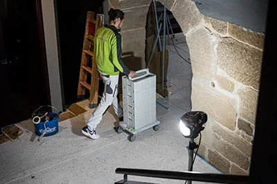 Das gilt natürlich auch für die Baustelle im Gewölbekeller. In knapp drei Wochen wird hier das „Embargo“ eröffnet. Wie das zeitlich hinhauen soll, ist dem unkundigen Betrachter schleierhaft, denn es sieht hier wirklich alles noch sehr nach Baustelle aus. Aber Valentin Schlienz ist sich seiner Sache sicher: „Eigentlich sind wir fast fertig. Das schaffen wir auf jeden Fall.“