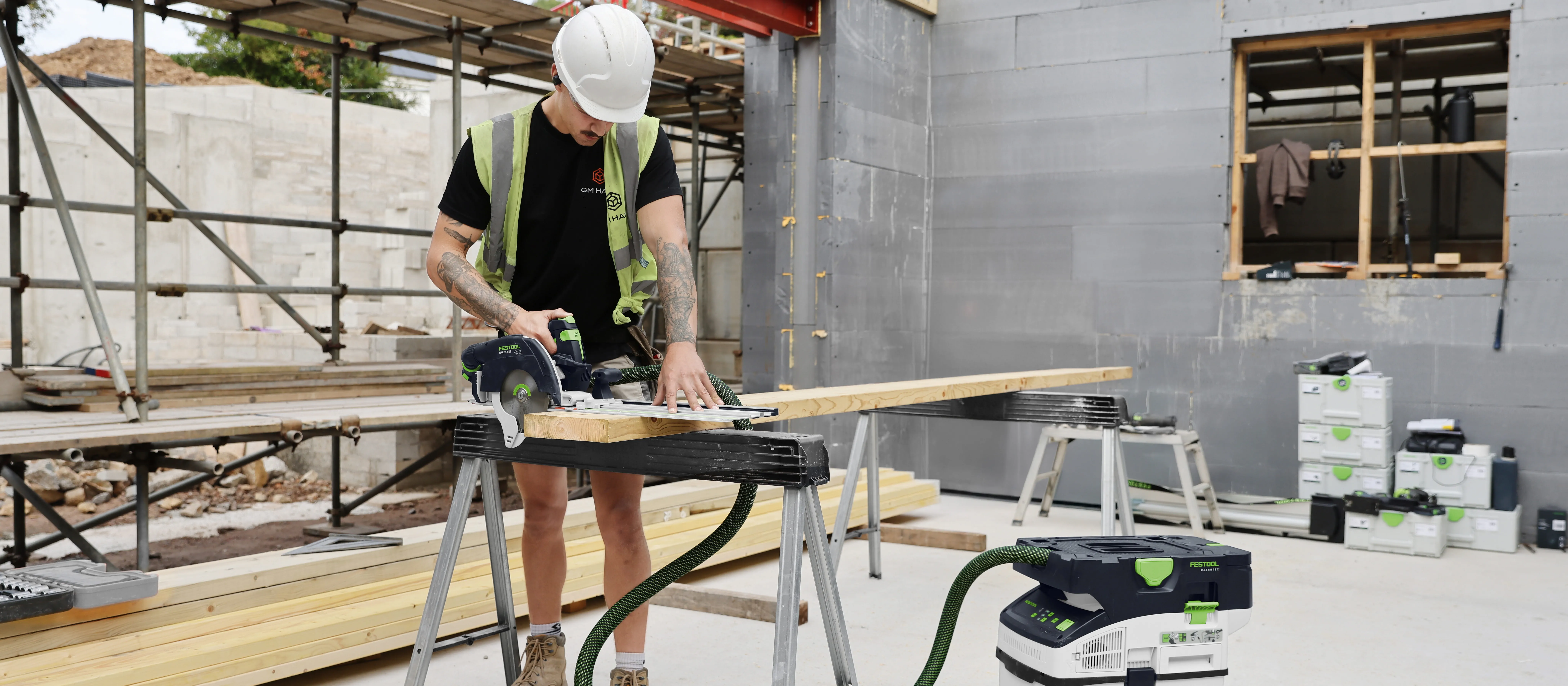 „First fix bedeutet Heavy duty. Und mit Festool geht das so viel einfacher und effizienter.“ Das sagt Sam Gough. Und er muss es wissen.