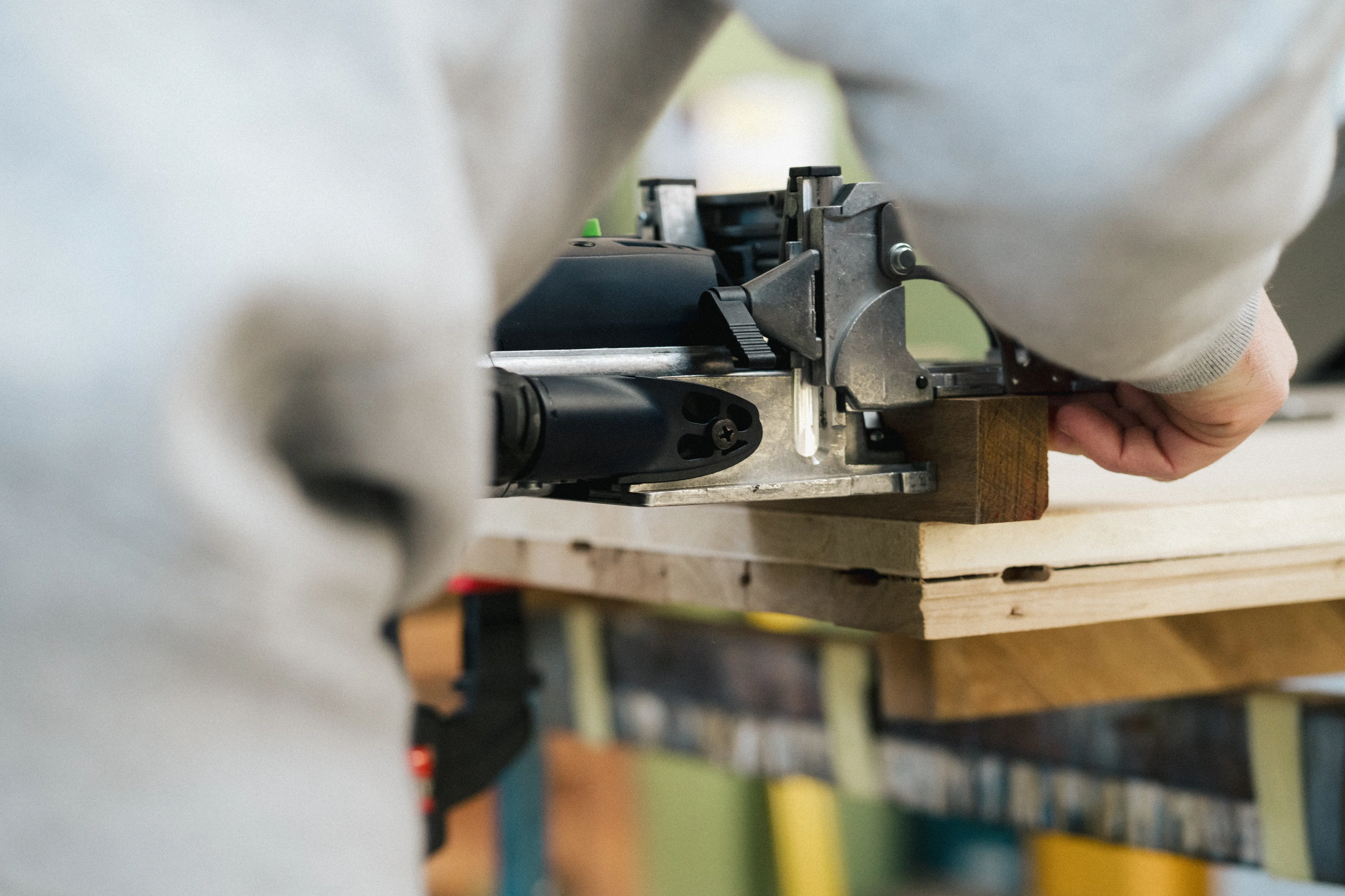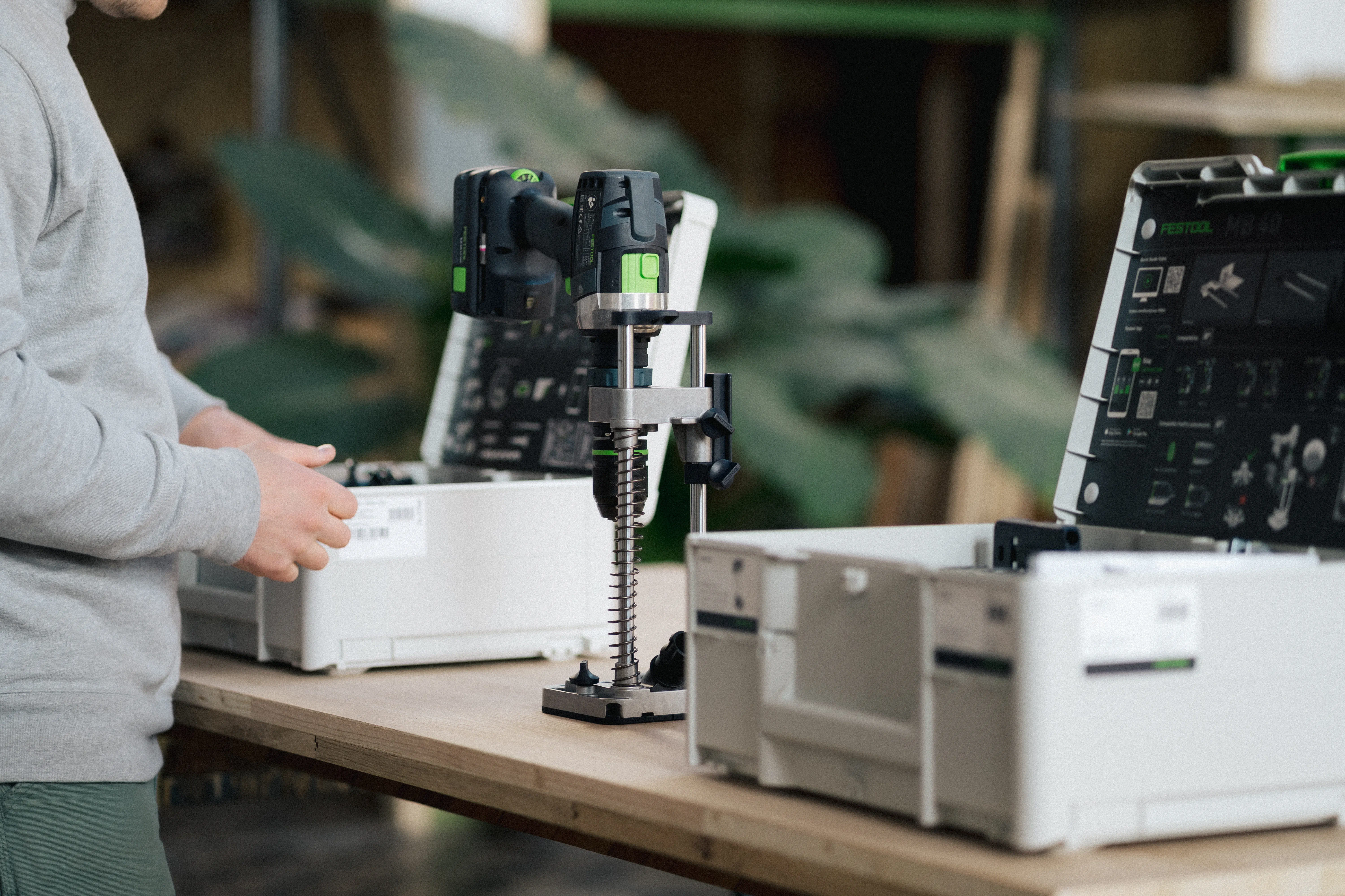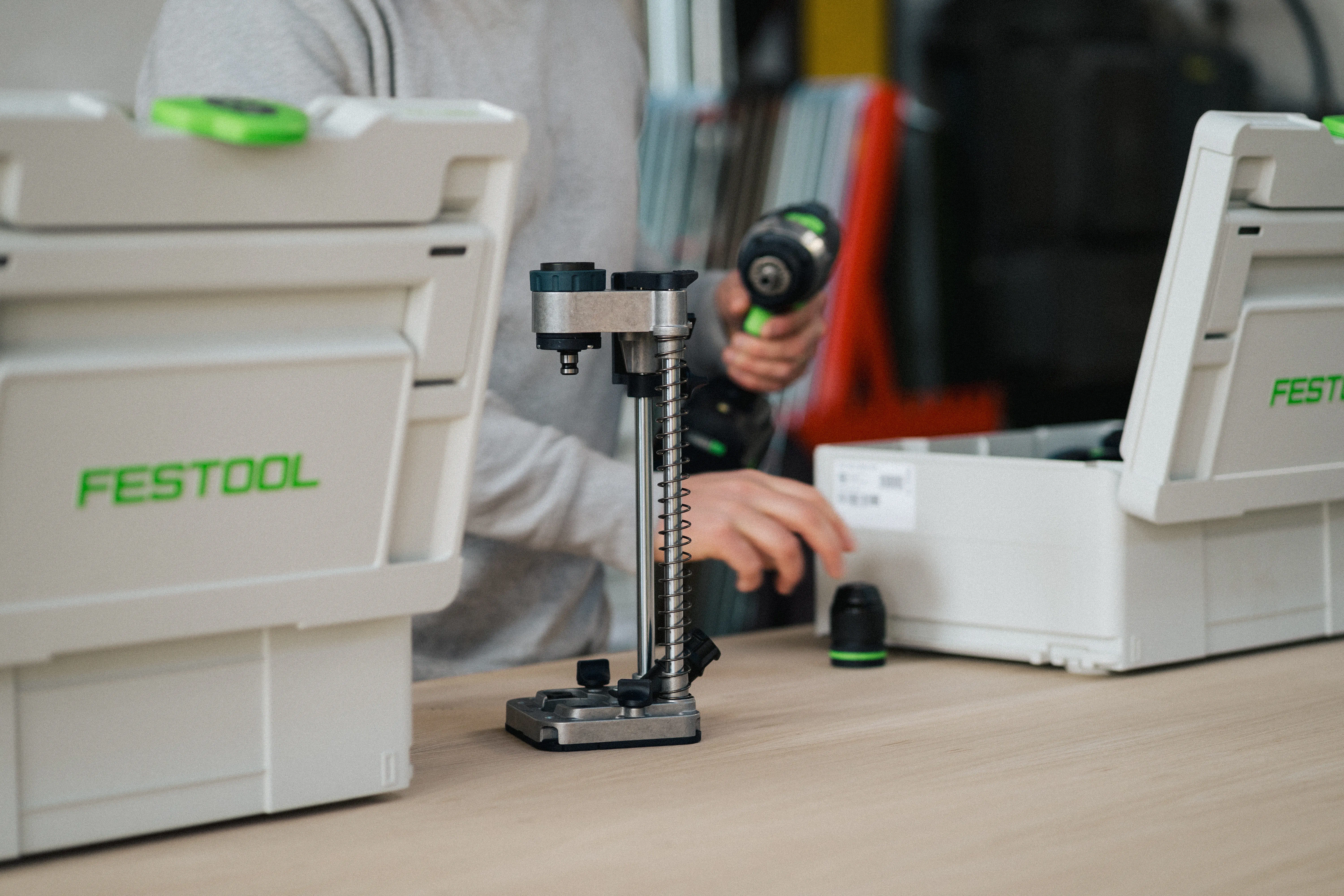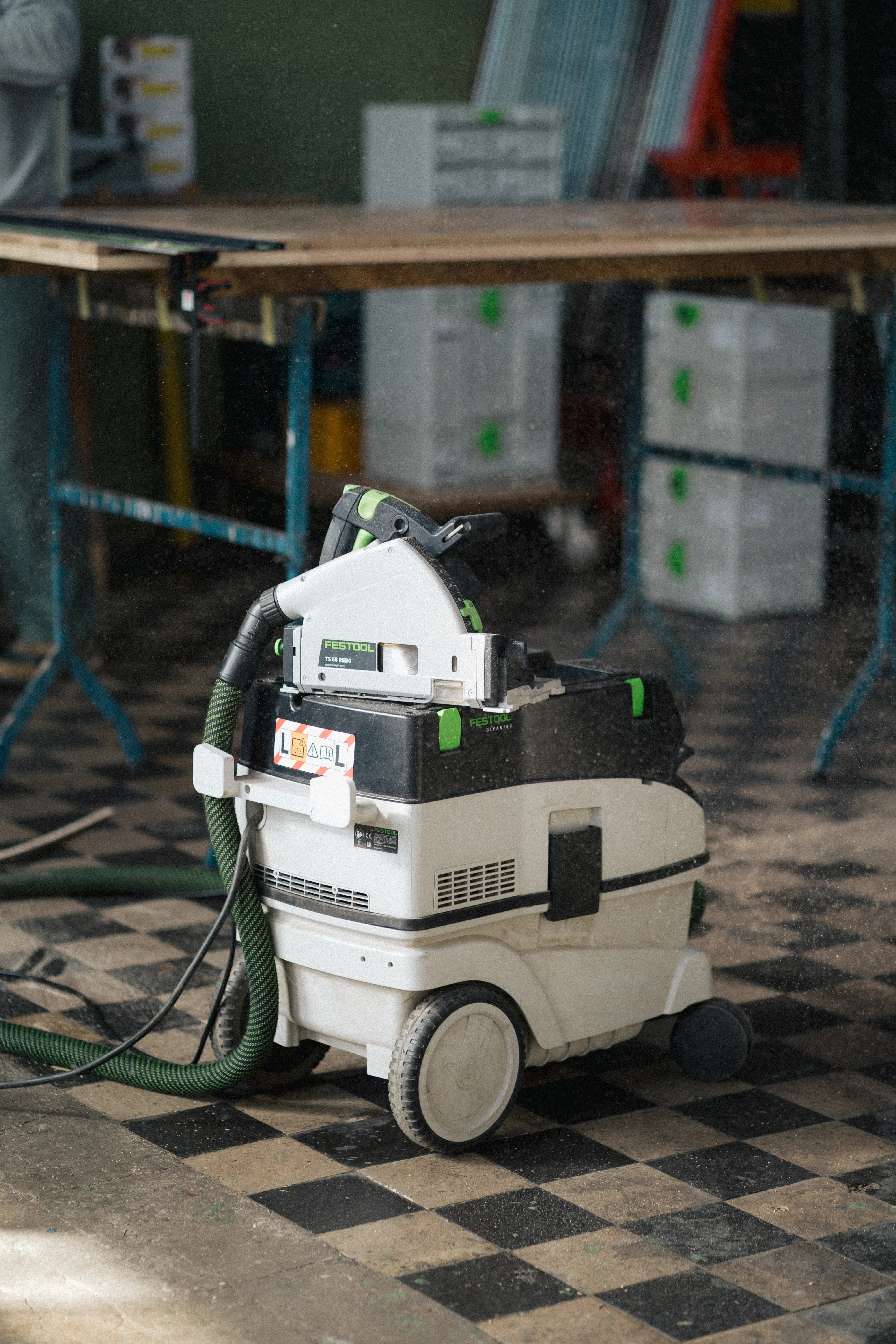 Bei mir findet man tatsächlich auch nur Werkzeug von Festool, von Exzenterschleifer über Tauchsäge und Akkuschrauber bis hin zu den Oberfräsen. Ich finde es einfach schön, dass das alles ein System ist und die Tools auch sinnvoll und wertig sind, deswegen wurde das Geld am Anfang immer direkt in neue Maschinen investiert und ich bereue es nicht, denn es macht einfach Sinn. Wir arbeiten jetzt zu dritt hier, wir haben vernünftiges Werkzeug und es geht nichts kaputt, das wird auch wertgeschätzt. Mir war es von Anfang an sehr wichtig, dass wir mit qualitativ hochwertigem Werkzeug arbeiten können und da ist Festool einfach unschlagbar.