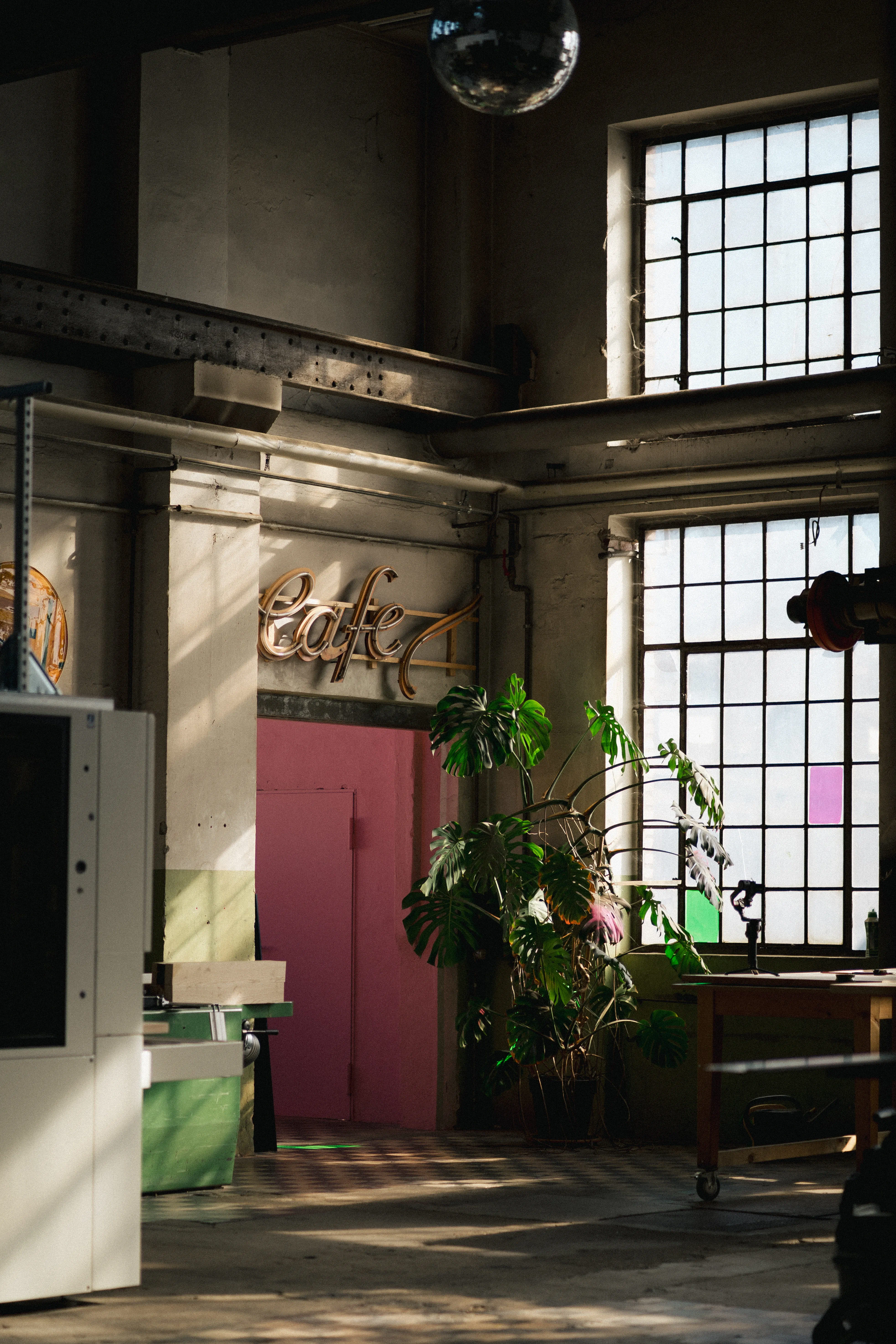 Gleichzeitig haben wir hier einen Raum, der nicht nur eine klassische Schreinerei ist, sondern auch ein Showroom oder ein Community Space. Wir veranstalten Events und haben eine Art Markthalle gelauncht, wo wir einmal im Jahr Künstlerinnen und Künstlern aus der Umgebung die Möglichkeit geben, bei uns in der Halle zu präsentieren. Wir bieten den Leuten eine Plattform, deswegen hat sich dieser Raum so toll entwickelt. Das ist die Idee dahinter, dass wir mit Fisch&Tisch eine coole Mission erfüllen mit den alten Böden und gleichzeitig diesen Ort hier nutzen, um dem Thema Nachhaltigkeit Ästhetik zu geben.