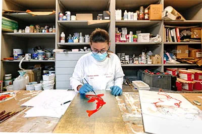 Am späten Nachmittag, zurück in der Firma, koordiniert Didier Lebon die Arbeit für die nächsten Tage und Wochen. Und er macht bis zum späten Abend das, was er am liebsten tut: mit ausgesuchten Materialien und innovativen Techniken an ganz neuen Dekoren zu tüfteln. Aus langjähriger Erfahrung schöpft er sein Wissen und sein Können. Die ungebremste Neugierde, Neues auszuprobieren, treibt ihn an.