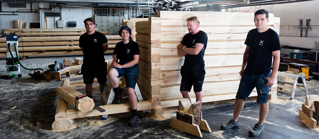Blockhütten aus Holz haben die Fähigkeit, Feuchtigkeit zu speichern und wieder abzugeben. „Diese traditionelle Bauweise hat sich seit Jahrtausenden bewährt. Sämtliche Wände besteht aus ein und demselben Material: Holz. Diese Konstruktion passt auch zu unserer finnischen Saunakultur; sie ist bekannt für ihren Minimalismus“, sagt Ilkka. Die Verbindung der einzelnen Balken erfolgt mit einem klassischen Schwalbenschwanzzinken. „Das hat zwei Vorteile: Optisch ist die Verbindung dekorativ und sie ist gleichzeitig sehr langlebig, zugfest und stabil. In leicht abgeänderter Form wird der Schwalbenschwanzzinken weltweit auch in Möbeln eingesetzt.“ Die Bauweise ist gleichzeitig wirtschaftlich und ökologisch sinnvoll. „Eine Sauna besteht nahezu vollständig aus Holz, das wir komplett regional beziehen. Natürlich kommen bei uns aber auch einige moderne Elektrowerkzeuge zum Einsatz; ohne diese Helfer könnten wir nicht im gleichen Tempo und wirtschaftlich produzieren. Vor allem Akkuwerkzeuge mit leistungsstarken Batterien ermöglichen uns deutlich mehr Flexibilität als früher.“