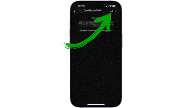 Du kannst an Umfragen teilnehmen und auf unsere Nachrichten mit Emojis reagieren. Leider ist es in WhatsApp-Kanälen nicht möglich, eine direkte Nachricht in den Chat zu schreiben. Wenn du den direkten Kontakt zu uns suchst, wende dich bitte an unseren Kundenservice: +49 (0) 7024 804 24010; customerservice-de@festool.com