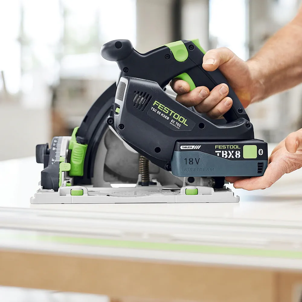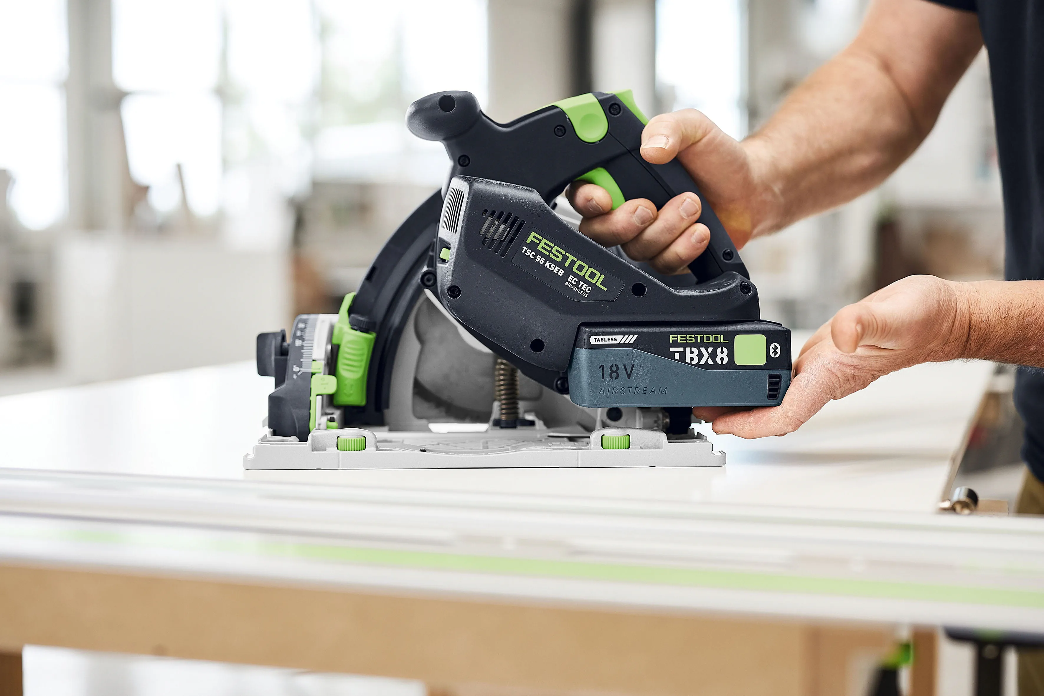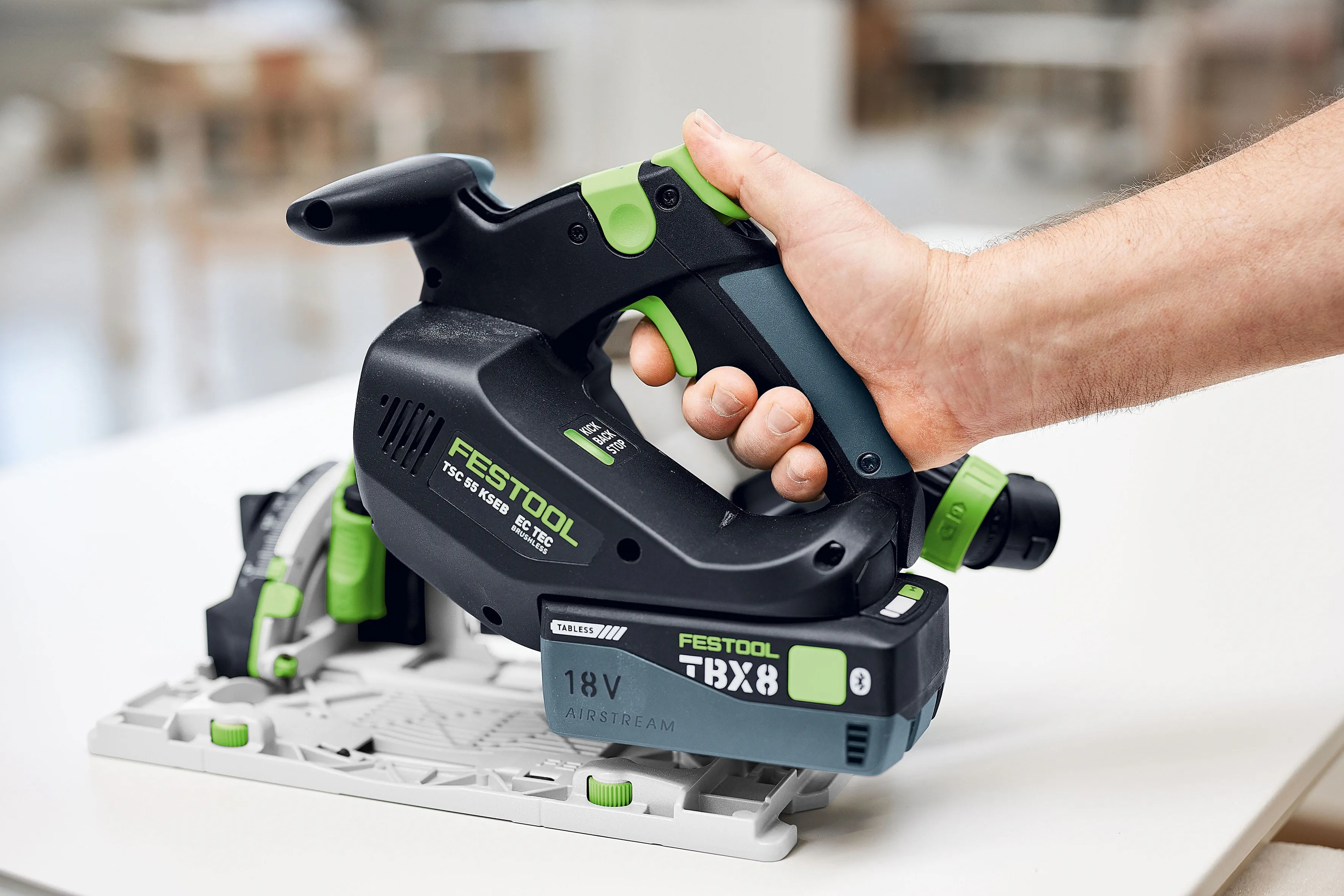 Die TSC 55 KS ist auf maximale Mobilität ausgelegt. Dank ihrer kompakten Bauform und dem geringen Gewicht liegt sie perfekt in der Hand und ist sofort einsatzbereit – mit nur einem Akkupack. Das schlanke Design ermöglicht präzise Schnitte direkt an der Wand und ohne Überstand auf der Führungsschiene. Ein Akkupack an der Säge, der zweite am Ladegerät: So wird unterbrechungsfreies Arbeiten zum Standard.