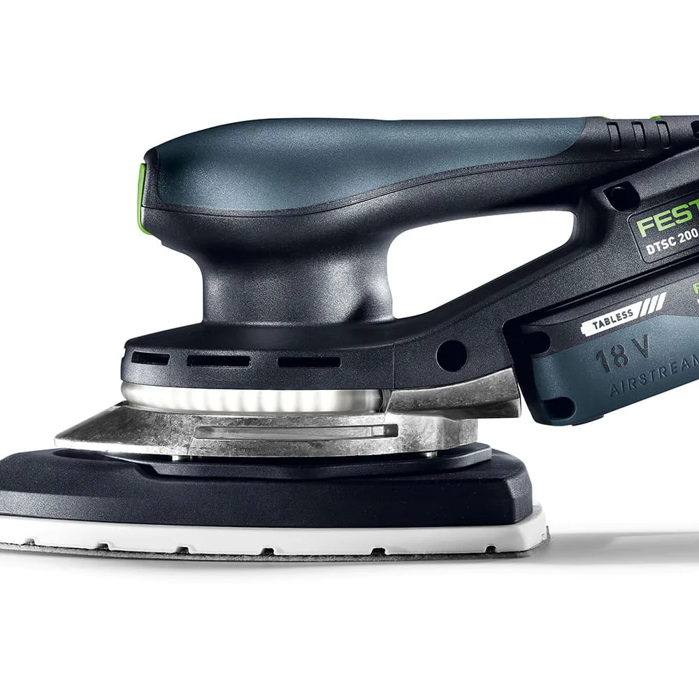 Der DTSC 200 ist ein echter Allrounder: Trotz seiner großen Schleiffläche erreicht er auch schwer zugängliche Stellen und tiefe Zwischenräume – ganz ohne Werkzeugwechsel. Die exzentrische Schleifbewegung sorgt für ein gleichmäßiges Finish, während der leistungsstarke EC 2.0-Motor mit stufenloser Drehzahlvorwahl auch unter hoher Belastung konstant arbeitet. Die hartmetallbestückte Tellerbremse verhindert ein unkontrolliertes Hochdrehen im Leerlauf und schützt das Werkstück vor Riefen. Der integrierte Vibrationsschutz sorgt für angenehmes Arbeiten ohne vorzeitige Ermüdung der Hände.