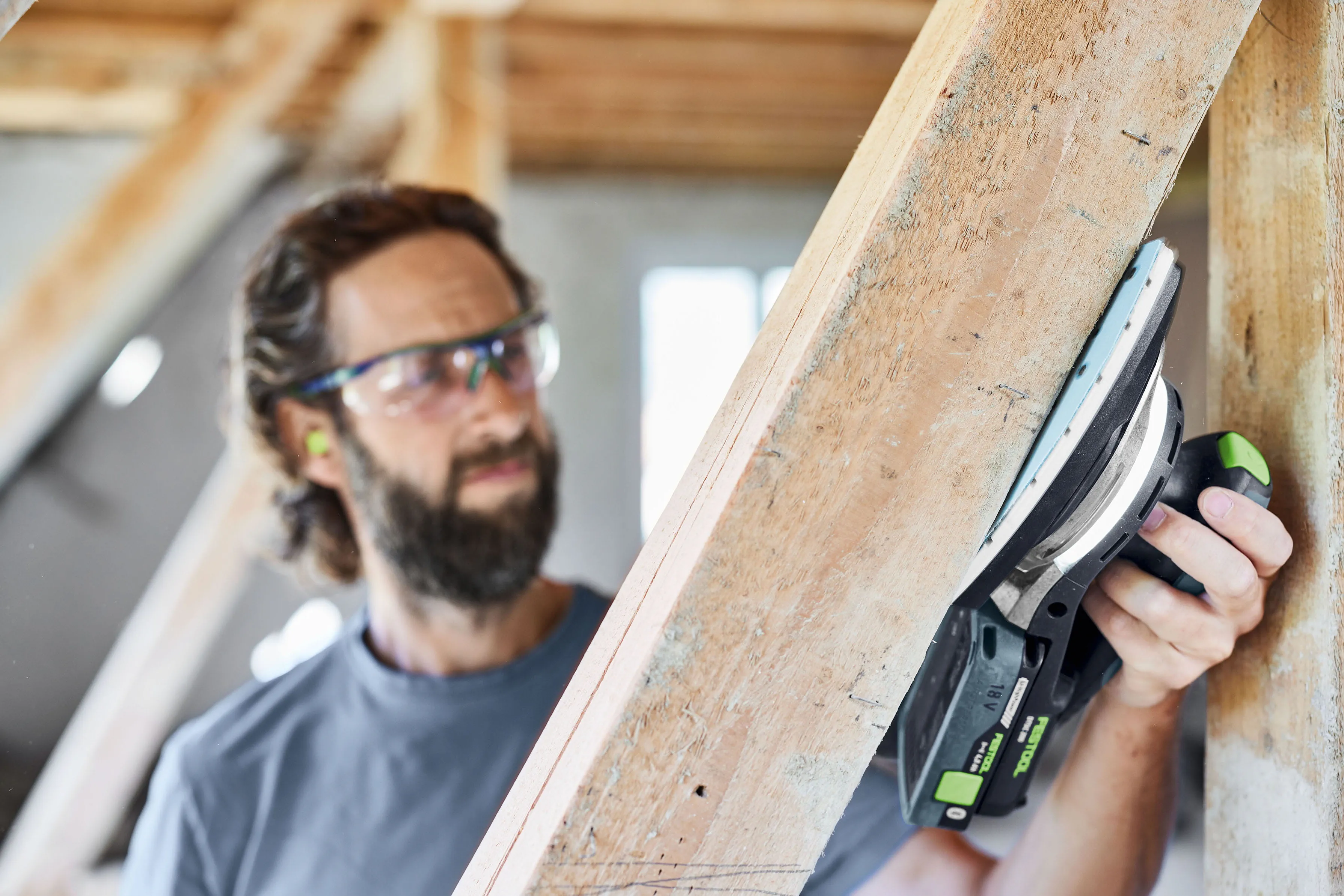 Lichtmodi – volle Beleuchtung oder gedimmtes Licht – lassen sich direkt am Gerät einstellen. Über die Festool App lässt sich das Licht zusätzlich stufenlos dimmen und die Nachleuchtdauer anpassen, um die Oberfläche nach dem Schleifen nochmals zu prüfen. So wird die Qualität des Schleifergebnisses deutlich verbessert –selbst bei schlechten Lichtverhältnissen.