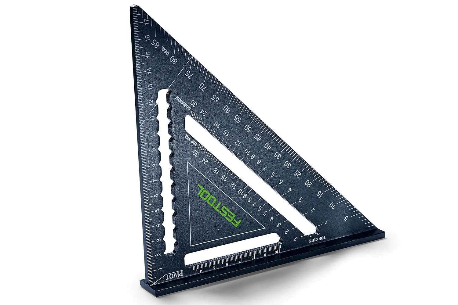 Zimmermannswinkel aus dunkelblauer Aluminiumlegierung auf den Punkt. Seine