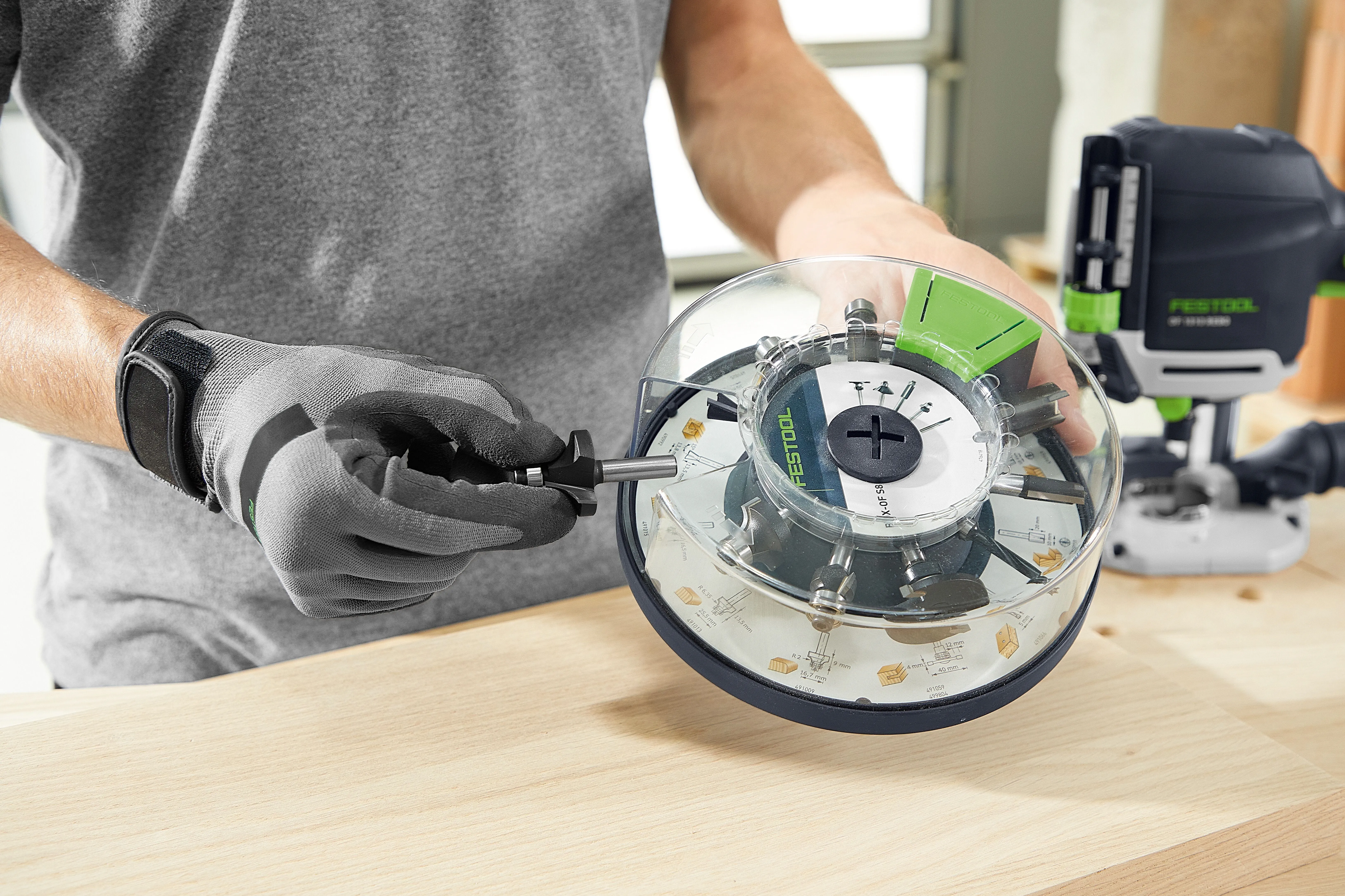 Für jede Fräsanwendung bietet die Zubehörwelt von Festool genau das, was man für ein perfektes Ergebnis braucht. Das breite Fräs-Sortiment erhöht die Vielfalt der Anwendungsmöglichkeiten enorm. Mit dem passenden Zubehör sind Fräsarbeiten von runden und eckigen Ausschnitten, Lochreihen bei Möbeln, Fingerzinken oder Arbeitsplattenverbindungen überhaupt kein Problem mehr. Das Zubehör ist exakt auf die Oberfräsen abgestimmt. Arbeitsabläufe lassen sich so beschleunigen, und man kommt schneller und präziser zu einem hochwertigen Ergebnis.
