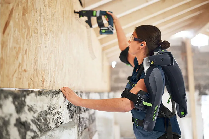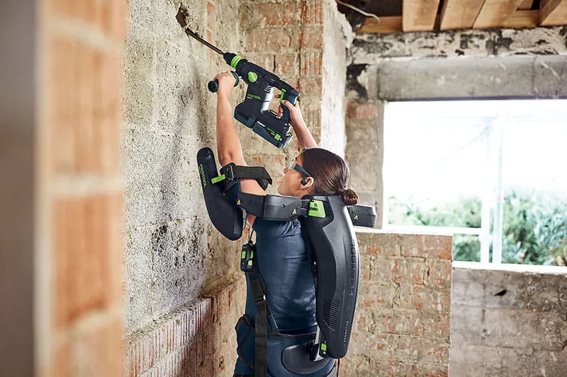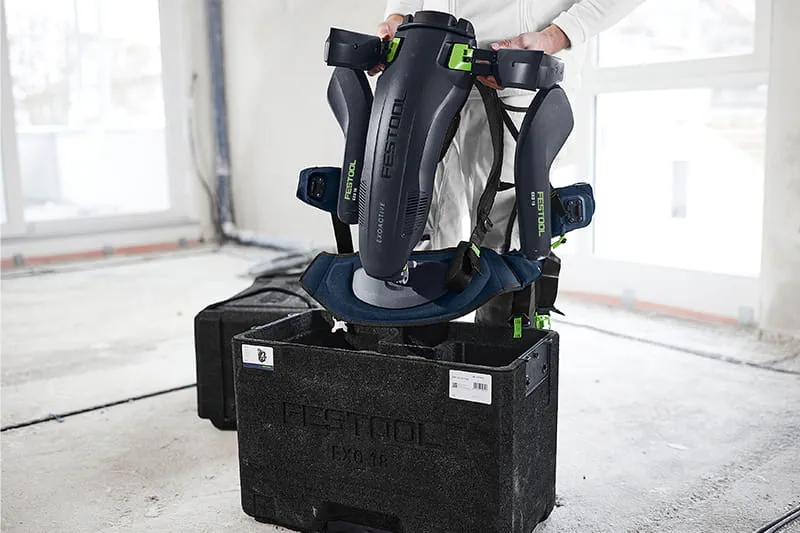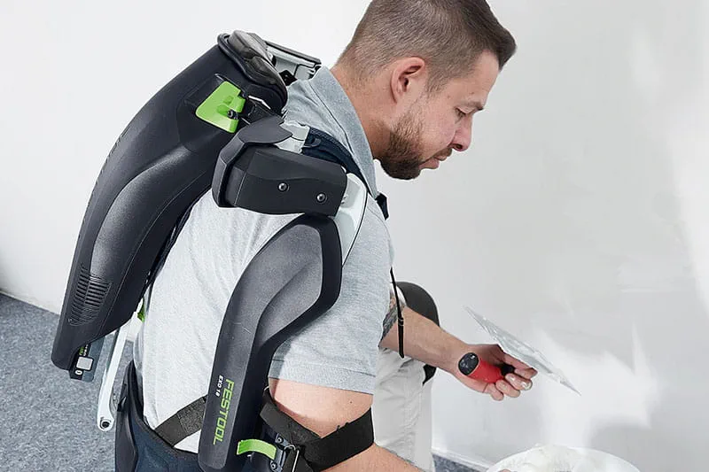 Festool führte sein neues ExoActive sehr erfolgreich in 2023 ein: ein aktives und mit 18 Volt Akku-Power betriebenes Exoskelett. Eine Revolution für das Bauhandwerk – egal ob Trockenbau oder Malerarbeit, Schleifen oder Montage, an Wänden oder Decken - ExoActive greift aktiv unter die Arme. Das ExoActive unterstützt bei Überkopfarbeiten mit Elektrowerkzeugen, klassischen Handwerkzeugen sowie bei Arbeiten mit der bloßen Hand am Material. Insofern bedeutet dies: Weniger körperliche Belastung durch ermüdungsfreies Arbeiten, mehr Konzentration auf die Arbeitsqualität und folglich mehr Effektivität und Freude an der Arbeit.