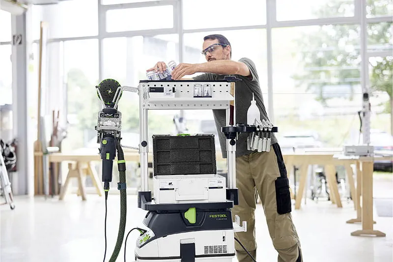 Festool stellt seine Sauger in seinem eigenen Werk in Illertissen/Süddeutschland her. In den letzten Jahrzehnten macht sich die Premiummarke nicht nur durch ihr vielfältiges Saugersortimentin der Branche bekannt, sondern auch mit dem passenden Zubehör dazu. Festool hat obendrein eine Reihe von Systemerweiterungen entwickelt, die das Saugen zu einem nahtlosen Prozess machen – ständig mit dem Ziel, die Effizienz und Benutzerfreundlichkeit weiter zu verbessern. So vielzählig wie die Anforderungen im Arbeitsalltag sind, sind auch die cleveren Lösungen mit praktischen Helfern von Festool: Ob bessere Arbeitsplatzorganisation, einfacher Transport, mehr Volumen für große Staubmengen oder Einschalten per Fernbedienung – für jeden Bedarf bietet Festool die passende Systemerweiterung.