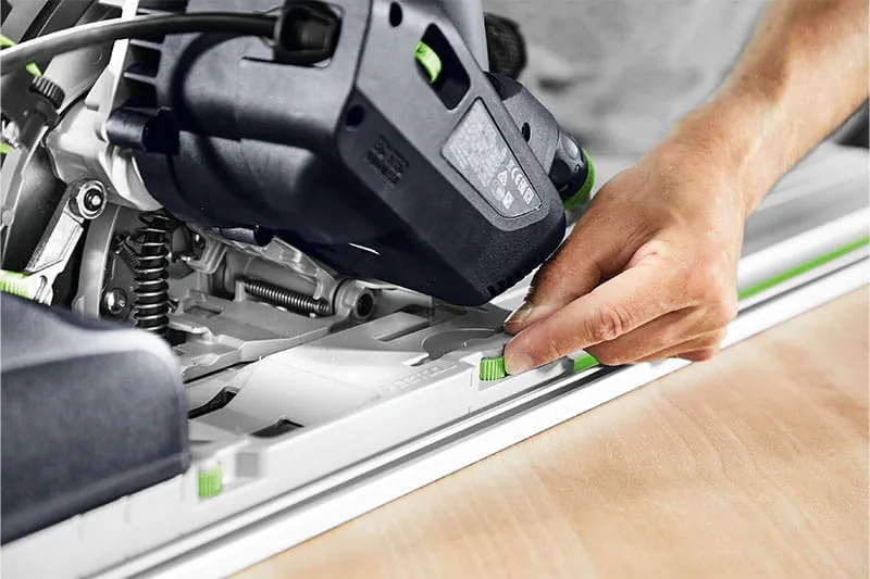 „Besonders praktisch im Arbeitsalltag ist, dass sich selbst große Platten nun mit der neuen TSV nicht nur in der Werkstatt, sondern jetzt auch mobil auf der Baustelle exakt und ausrissfrei zuschneiden lassen. Mit unserem vielseitigen Systemzubehör entstehen Schnitte wie mit einer Stationärmaschine. In dieser Form gab es das bisher noch nie: Mobiles und gleichzeitig präzises, ausrissfreies Sägen auf Maß“, so Seyfried. Je nach Anwendung kann der Vorritzer flexibel ein- oder ausgeschalten werden. Insbesondere beim Plattenzuschnitt sind perfekte Ergebnisse sehr wichtig. Und genau deshalb lässt sich die neue Vorritzer-Tauchsäge - wie von Festool gewohnt – auch auf der Führungsschiene einsetzen. Durch die Fixierung der Führungsschiene mit Schraubzwingen und den werkzeuglos einstellbaren Führungsbacken läuft die TSV 60 K absolut spielfrei. Dies garantiert hochwertige Arbeitsergebnisse.