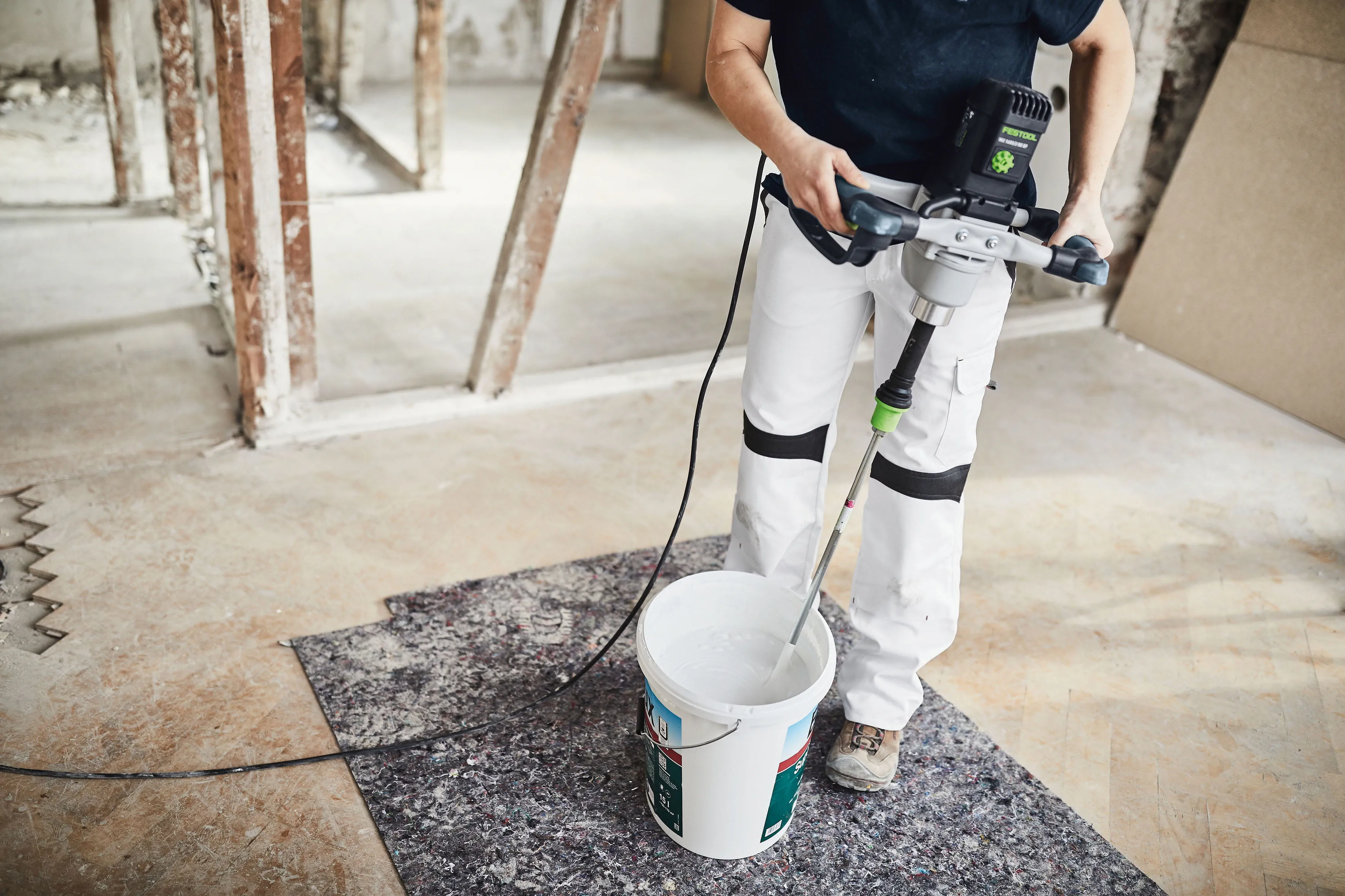 Das richtige Mischen von pulverförmigen Materialien wird meist unterschätzt. Philipp Stahl - Anwendungstechniker bei Festool und Malermeister - beschreibt, warum gerade dieser Prozess so entscheidend ist. Insbesondere die Kombination aus Rührwerk und Rührstab spielt für das Mischen und Rühren eine wichtige Rolle und sollte individuell auf das entsprechende Material abgestimmt sein.