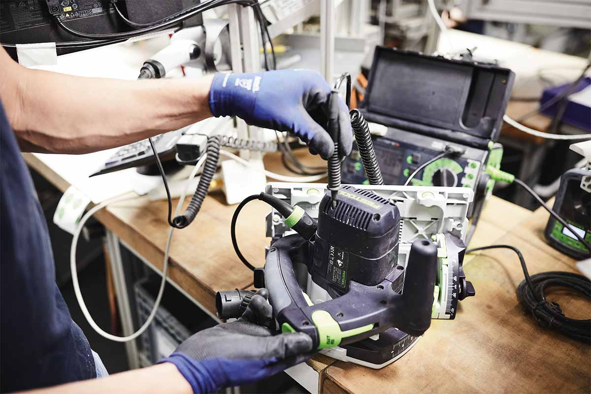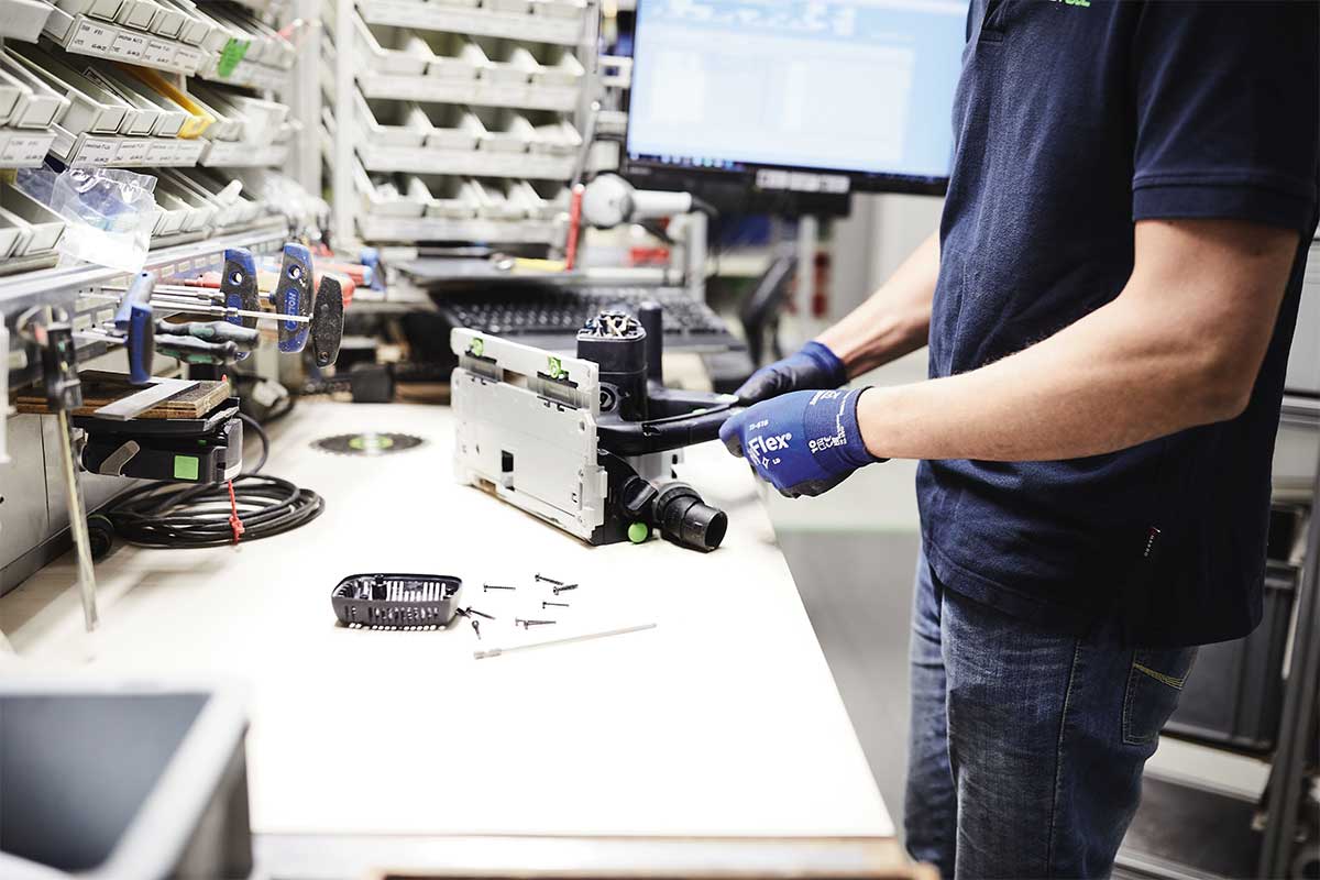Du kannst rund um die Uhr eine Reparatur über dein persönliches MyFestool Konto direkt bei uns beauftragen. Dabei profitierst du von einem kostenlosen Transportservice, einer schnellen Reparaturabwicklung und regelmäßigen Statusmeldungen, die dich über den Reparaturvorgang informieren. Im Rahmen unserer Garantie all-inclusive sogar gratis in den ersten drei Jahren1. Das macht 100 % Reparatur bei null Kosten.