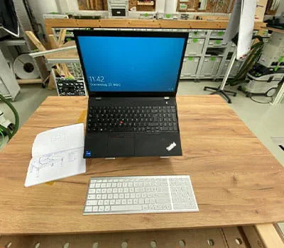 - Tisch/Tischplatte z.B. Multiplexplatte (kein Kantenmaterial nötig/muss nicht bekantet werden)