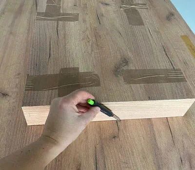 Anzeichnen der Scharniere am Tisch und an der Klappe.