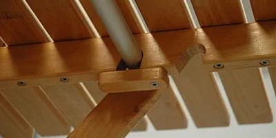 Schneiden Sie die Leisten auf das in der Materialliste angegebene Maß zu. Bei Schnitten quer zur Faser, sollte man ein feines Sägeblatt (Vielzahn- bzw. Furniersägeblatt) benutzen. Die Aussteifung für das Untergestell (Pos. 6)