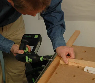 Nachdem die Rahmen der Unterkonstruktion verschraubt sind, legen Sie die inneren Verkleidungen (Pos. 2,7,13) auf. Die Platten mit Zwingen fixieren und die Löcher für die Schrauben bohren. Verschrauben Sie die Platten mit Spax (3,5 x 20 mm) auf der Unterkonstruktion.