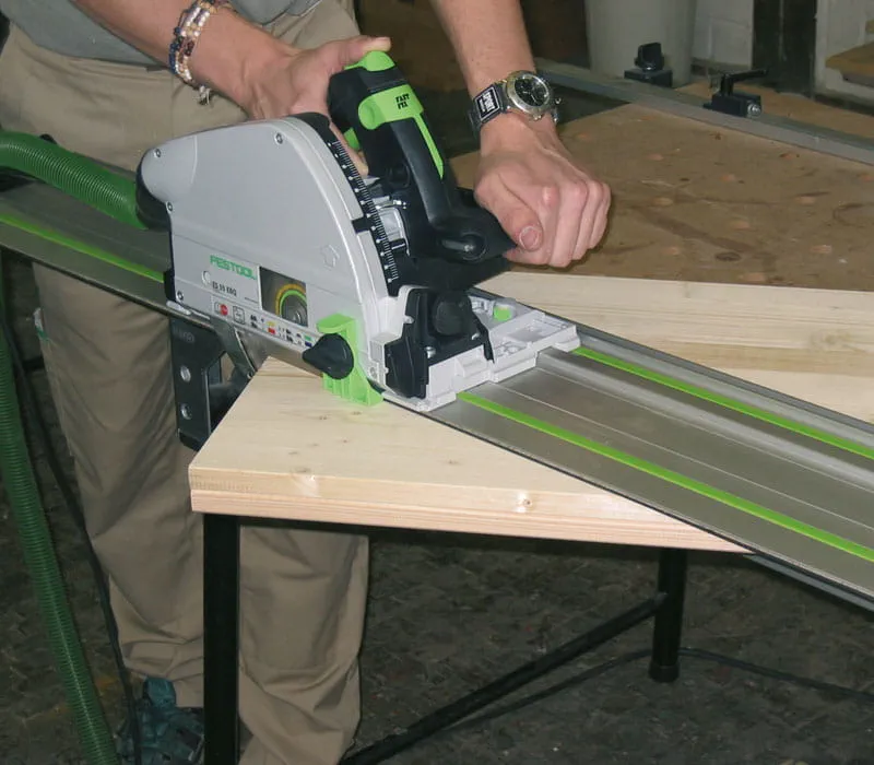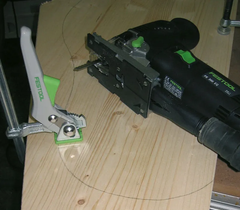 Anzeichnen der Außenkanten der Seitenteile. Ausschneiden der geraden Schnitte mit einer Handkreissäge und Führungsschiene oder mit einer Stichsäge.