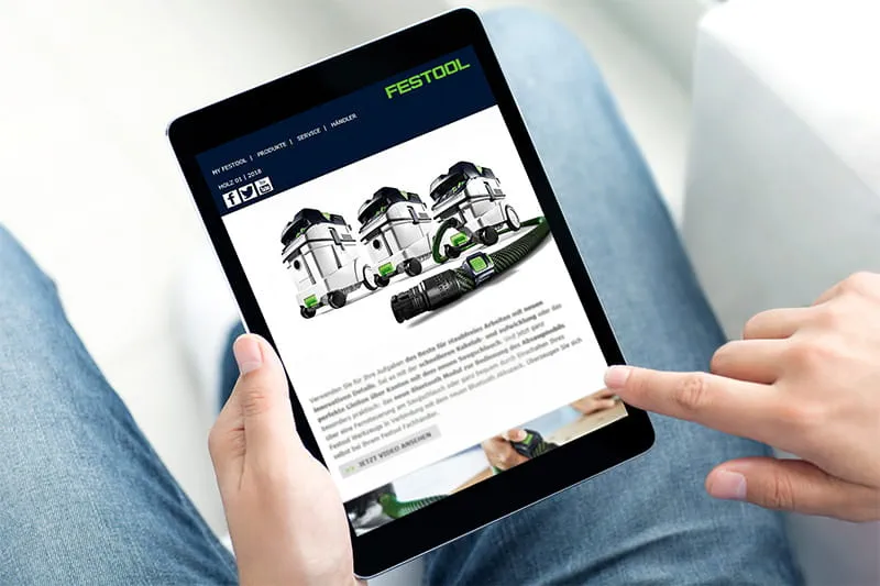 Dann melde dich jetzt zum kostenlosen Newsletter an. Erfahre per E-Mail aus erster Hand alles rund um Festool. So verpasst du nichts mehr!